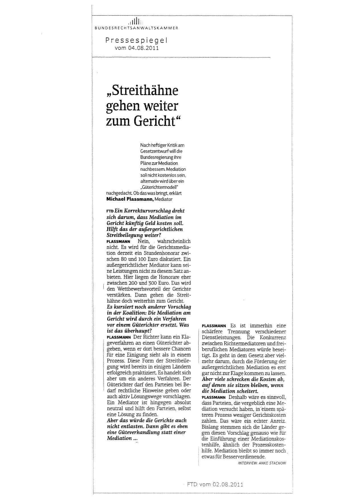Der Expertenblick der Mediationskanzlei Plassmann spiegelt sich auch in den Medien wider: